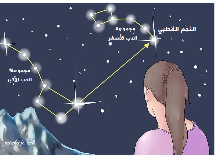 النجمان في مقدمة مجموعة الدب الأكبر التي تشبه المقلاة يشيران إلى نجم القطب الشمالي الذي يقع في ذيل مجموعة الدب الأصغر حيث تقع النجوم الثلاثة على استقامة واحدة.