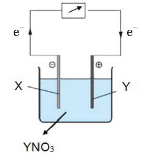 أتأمل الشكل المجاور الذي يمثل خلية كهركيميائية، قطباها الفلزان X,Y في محلول كهرلي YNO3، ثم أجيب عن الأسئلة الآتية: