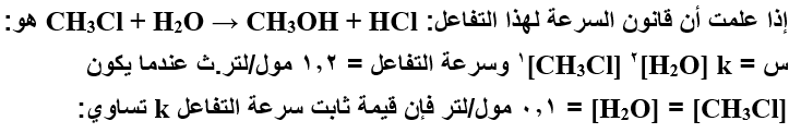 تعتمد وحدة ثابت سرعة التفاعل k على: